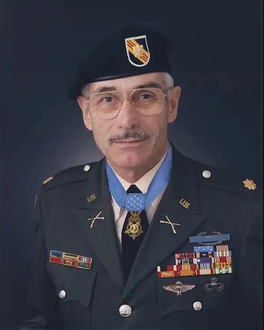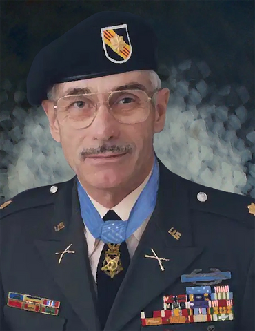 M/Sgt. Gordon continued to travel the perimeter, protecting the downed crew. After his team member was fatally wounded, and his own rifle ammunition exhausted, M/Sgt. Gordon returned to the wreckage, recovering a rifle with the last five rounds of ammunition and gave it to the pilot with the words "Good Luck." Then, armed only with his pistol, MSgt. Gordon continued to fight until he was fatally wounded. His actions saved the pilot's life.