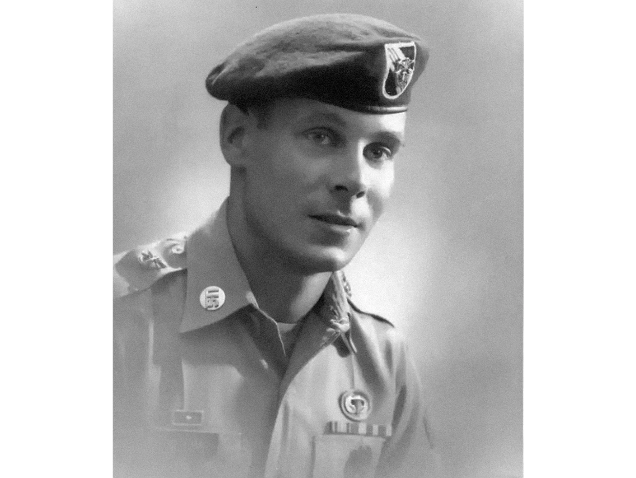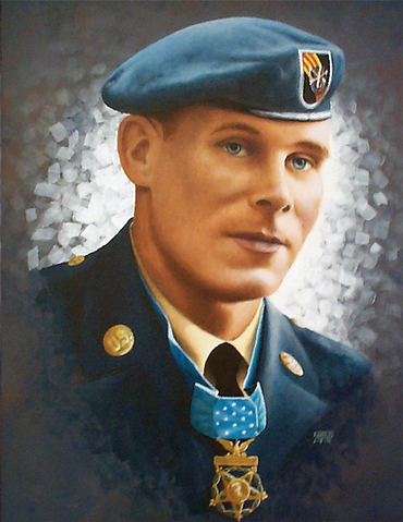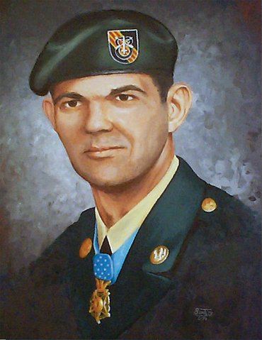 Rejoining the patrol under increasing enemy pressure, he positioned each man in a tight perimeter defense and continually moved from man to man, encouraging them and controlling their defensive fire. Mainly due to his example, the outnumbered patrol maintained its precarious position until the arrival of tactical air support and a helicopter extraction team. As the rescue helicopters arrived, the determined North Vietnamese pressed their attack.